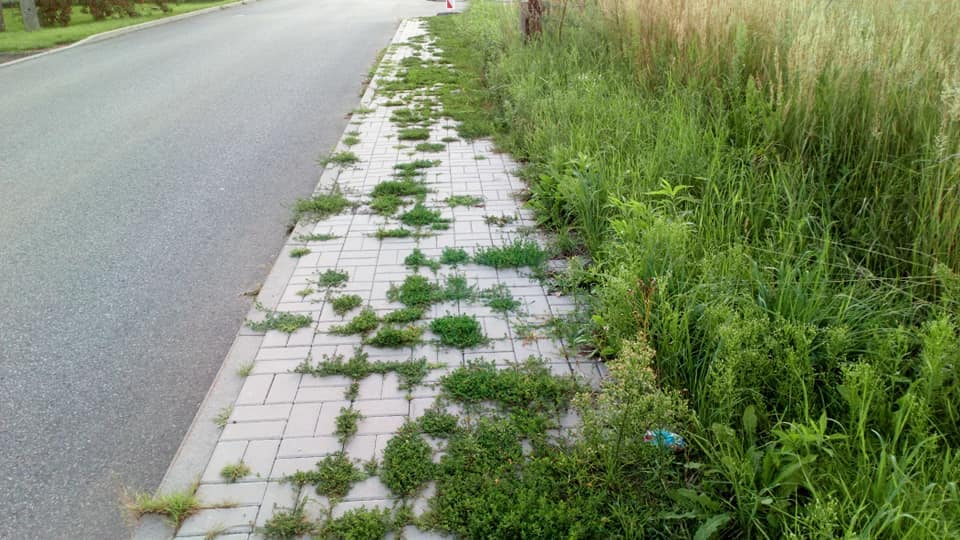 Chodnik przy ul. Spokojnej w Trzebini (1046 K) całkowicie zarasta trawą. Wniosek zostanie przekazany do Powiatowego Zarządu Dróg w Chrzanowie jako właściciela drogi.