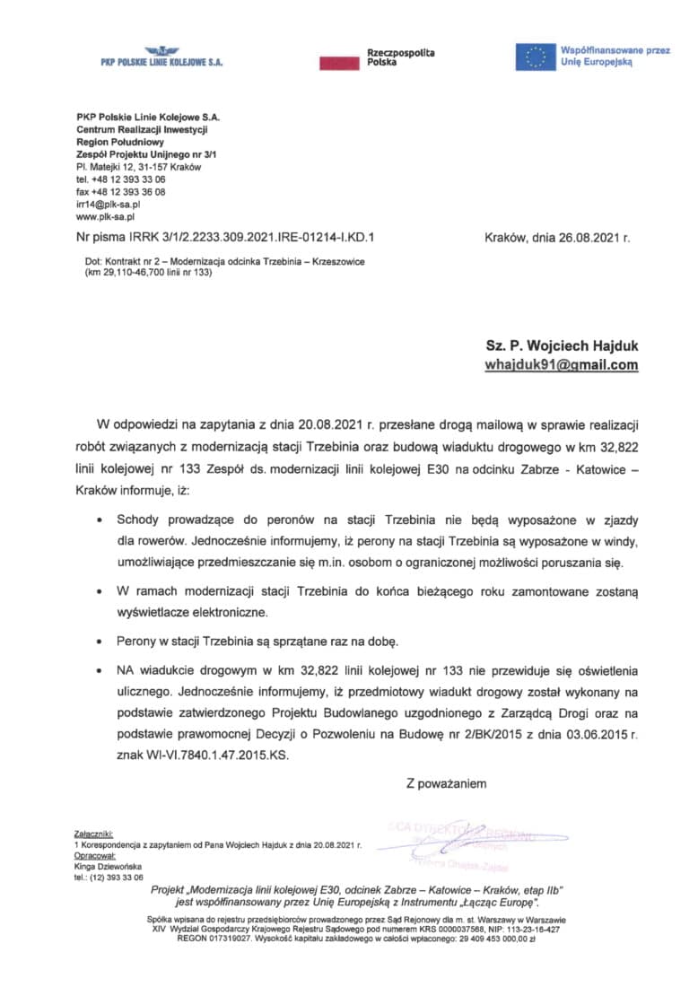 W ostatnim czasie pytaliście o modernizację linii kolejowej, w tym remont dworca w Trzebini.