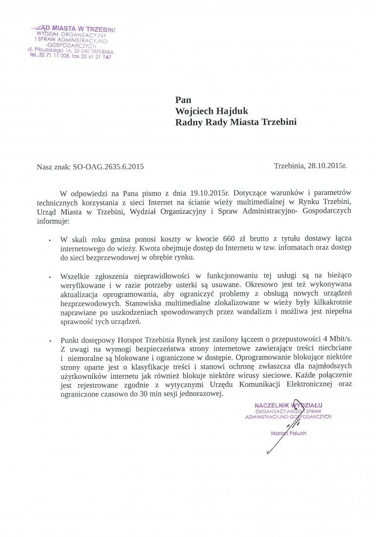 W związku z zapytaniami Mieszkańców przekazuję odpowiedź Urzędu Miasta: