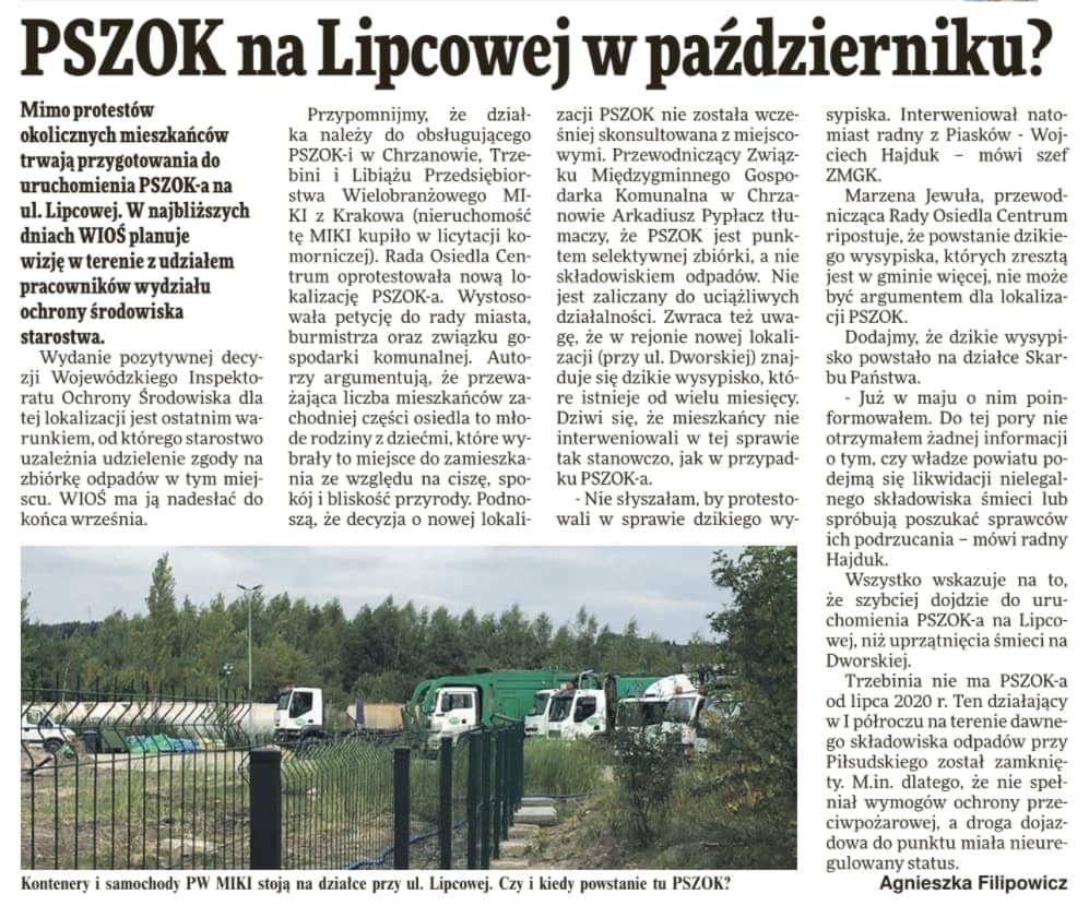 Już w maju poinformowałem urząd miasta i Starostwo Powiatowe w Chrzanowie o wysypisku śmieci zlokalizowanym w rejonie ul. Dworskiej w Trzebini. Do tej pory nie otrzymałem żadnej informacji o tym, czy władze powiatu podejmą się likwidacji nielegalnego składowiska śmieci lub spróbują poszukać sprawców podrzucania.