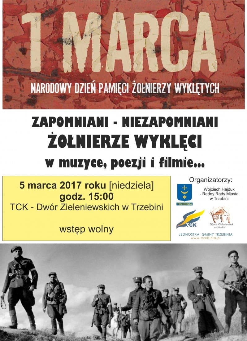W najbliższą niedzielę 5 marca 2017 roku o godz. 15 w Dworze Zieleniewskich odbędzie się spotkanie z okazji Narodowego Dnia Pamięci Żołnierzy Wyklętych.