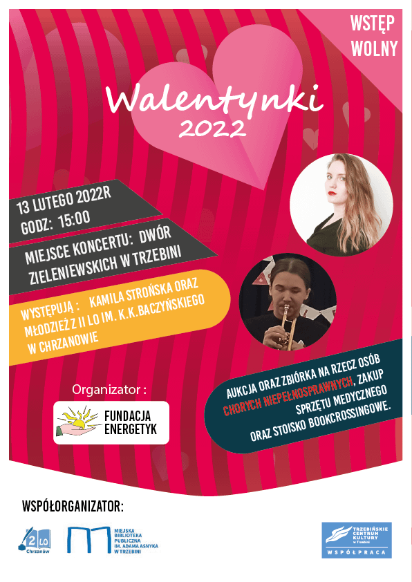 W niedzielę 13 lutego 2022 roku w Dworze Zieleniewskich odbędzie się koncert walentynkowy połączony z akcją charytatywną. Wydarzenie organizuje trzebińska Fundacja Energetyk.