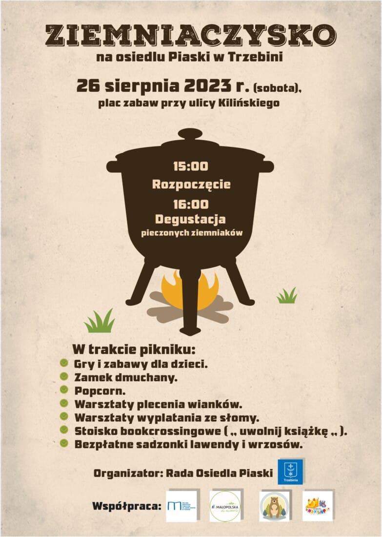 Już w najbliższą sobotę 26 sierpnia od godziny 15:00 na placu zabaw przy ulicy Kilińskiego odbędzie się Piknik Rodzinny wraz z Ziemniaczyskiem. Pożegnamy lato i spędzimy wspólnie czas!