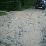Z powodu wody opadowej spływającej z terenów ul. Topolowej (przy garażach) teren przy stanowisku kontenerowym został wymulony i powstała wyrwa, która stwarza zagrożenie dla mieszkańców korzystających z w/w stanowiska kontenerowego. Zasypanie ubytków kamieniem lub wyasfaltowanie (wybetonowanie) powinno zatamować powstawanie zagłębień, które się tworzą poprzez przelewanie się wody przez stanowisko kontenerowe.