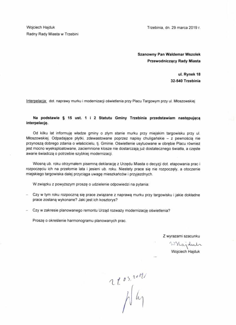 - przeznaczeniu 140 tys. zł na zakup samochodu służbowego na potrzeby urzędu miasta w Trzebini;