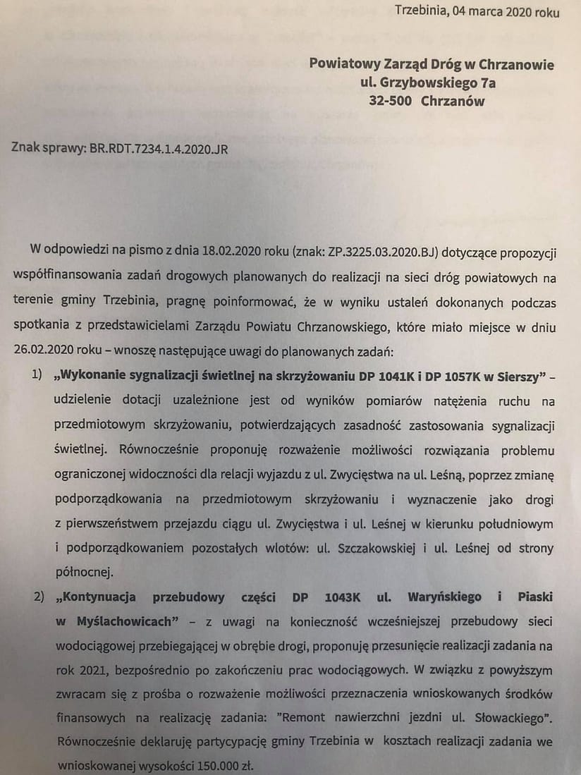 Wciąż czekamy na stanowisko Powiatowego Zarządu Dróg z Chrzanowa.