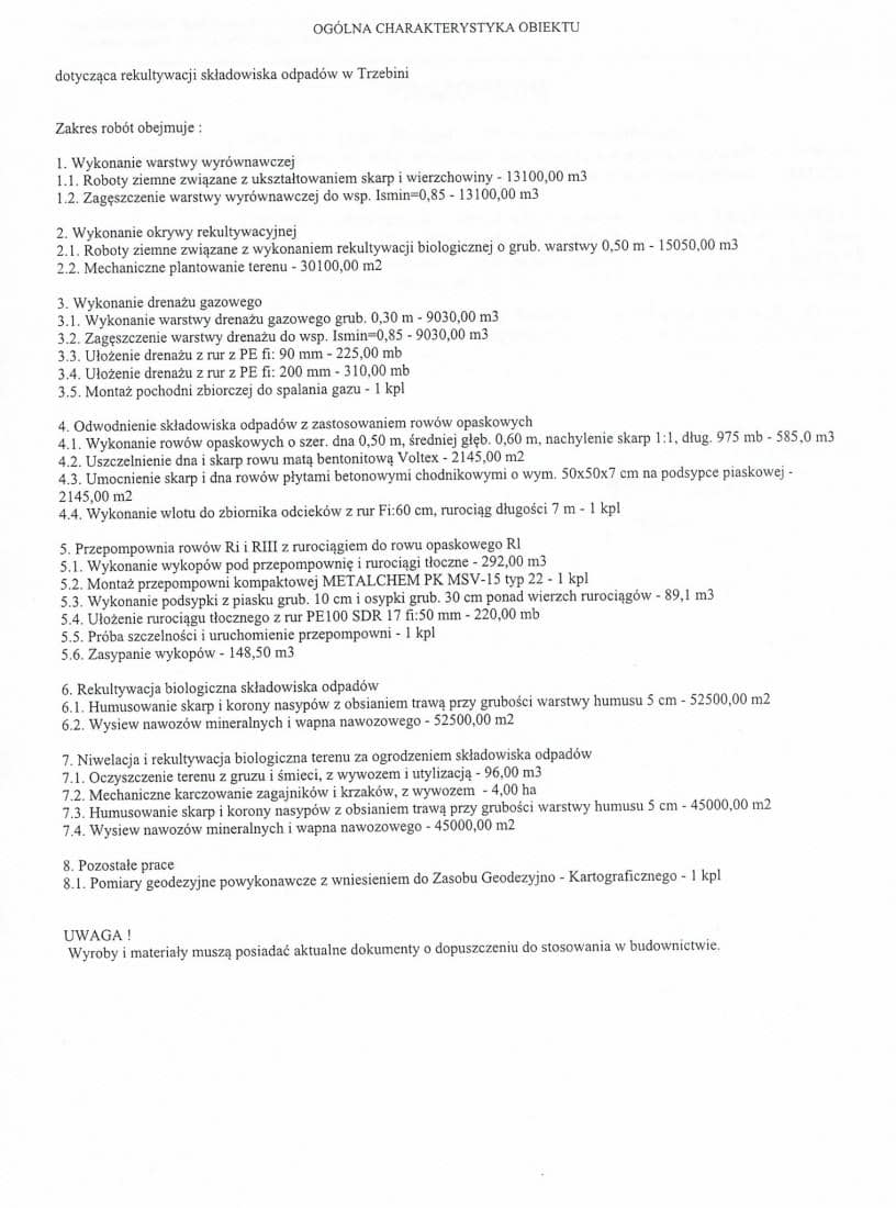 - do końca października – roboty ziemne – wykonanie okrywy rekultywacyjnej, rekultywacja biologiczna składowiska odpadów i pomiary geodezyjne powykonawcze.