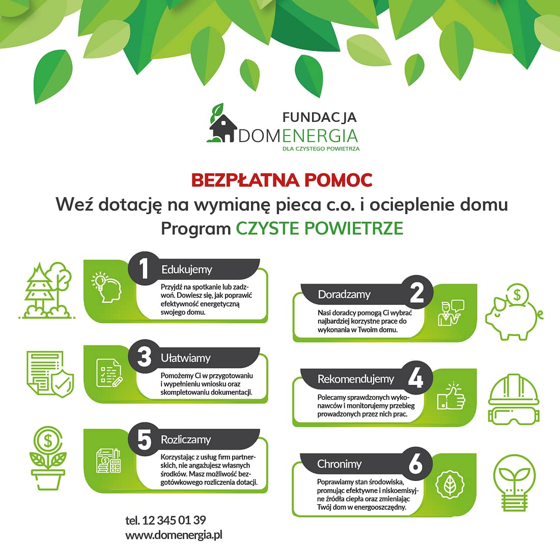 W najbliższą środę 18 grudnia o godz. 17 w sali na parterze przy ul. Rynek 18 w Trzebini odbędzie się spotkanie z przedstawicielami Fundacja DomEnergia z Krakowa w sprawie bezpłatnej pomocy mieszkańcom w przygotowaniu wniosków dotacyjnych w ramach programu „Czyste Powietrze”.