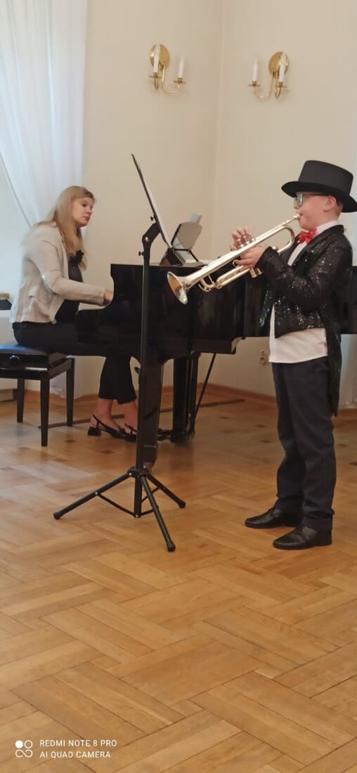 Koncert uświetnili nasi milusińscy – Rafałek Rudnicki – piękny śpiew oraz gra na fortepianie – mimo poważnej kontuzji ręki zagrał. Dominik Papuziński wykonał przepięknie, przejmująco utwory na trąbce, przy akompaniamencie pani Elżbiety Ustupskiej-Kazmik. Szymon Mirek ze Szkoły Muzycznej z Chrzanowa wykonał utwory muzyczne na saksofonie, fantastyczny występ. Akompaniował Szymonowi pan Krzysztof Gutowski. Nauczyciele akompaniujący dzieciom, reprezentują Szkołę Muzyczną w Chrzanowie. Dyrektorowi niniejszej szkoły panu Ireneuszowi Stańczakowi oraz nauczycielom dziękujemy za współpracę.