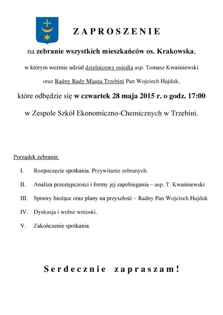 na zebranie wszystkich mieszkańców os. Krakowska,